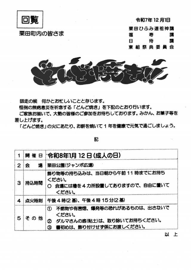 令和7年度栗田町内会事業(行事)計画表の一部を訂正しましたので、3版として再掲載います。